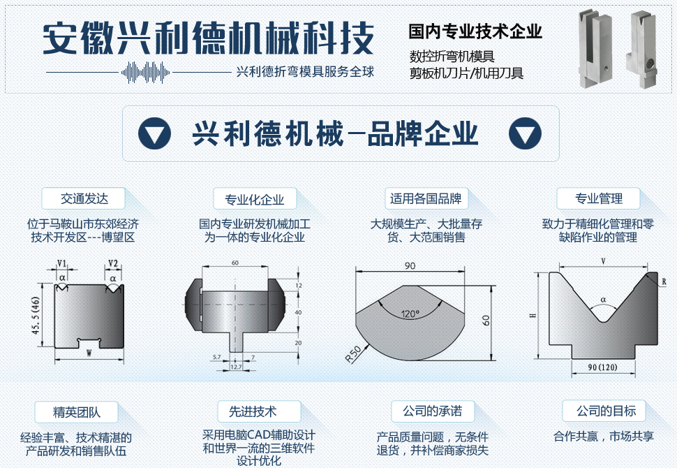安徽興利德機(jī)械科技有限公司(簡稱興利德公司)成立于2008年, 位于馬鞍山市東郊經(jīng)濟(jì)技術(shù)開發(fā)區(qū)---博望區(qū),是一家國內(nèi)專業(yè),研發(fā) 生產(chǎn)制造數(shù)控折彎機(jī)模具、剪板機(jī)刀片、等機(jī)用刀具及機(jī)械 加工為一體的專業(yè)化企業(yè)。產(chǎn)品適用于各國品牌設(shè)備 ,如, AMADA(阿姆達(dá) )、KOMATS (小松)、LVD (比利時(shí) )、BEYELER(貝勒) 、上海ACL、亞威、揚(yáng)力、金方圓等, 經(jīng)過近幾年的快速發(fā)展,現(xiàn)已形成大規(guī)模生產(chǎn)、大批量存貨、大范圍銷售的良好局勢,除廣泛供應(yīng)國內(nèi)市場外,還隨配套機(jī)床一同銷往歐洲、美洲、東南亞等地。 興利德公司用現(xiàn)代企業(yè)的管理方法,致力于精細(xì)化管理和零缺陷作業(yè)的管理。立足于產(chǎn)品的質(zhì)量管理,以其優(yōu)秀的品質(zhì),新穎的設(shè)計(jì),合理的價(jià)格,完善的售后服務(wù)贏得了廣大中外客戶的一致好評。 公司有一支經(jīng)驗(yàn)豐富、技術(shù)精湛的產(chǎn)品研發(fā)和銷售隊(duì)伍,采用電腦CAD輔助設(shè)計(jì)和三維SolidWorks軟...更多>